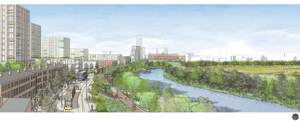 The Crescent Salford development area exemplifies the UK’s brownfield‑first regeneration commitment, transforming multiple underused urban sites into a green, low‑carbon, future‑ready district.